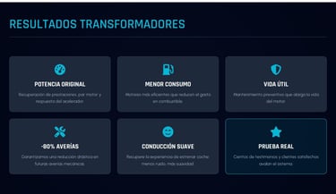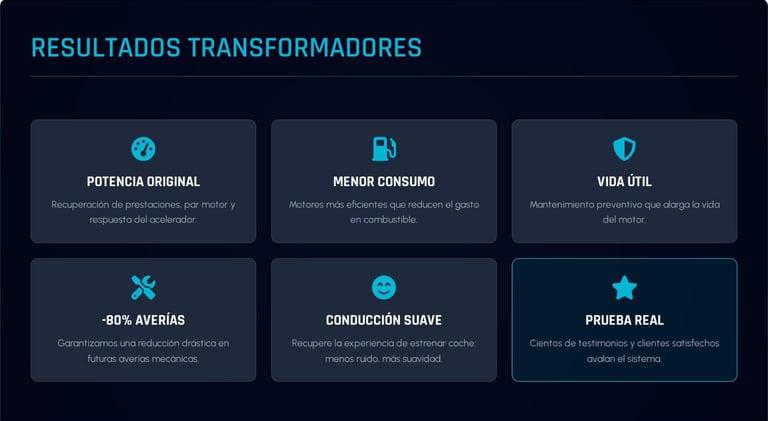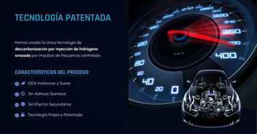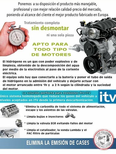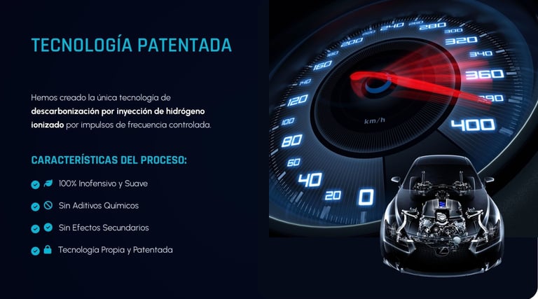 Nuestro sistema utiliza gas ox hidrógeno (HHO) ionizado, inyectado directamente en el motor. Gracias al alto poder calorífico del HHO, la temperatura de la combustión aumenta rápidamente, provocando una pirólisis controlada. Este proceso desintegra y elimina de forma efectiva todos los depósitos de carbonilla acumulada en el motor, generalmente en menos de una hora.